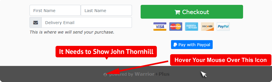 If you want to be SURE that I get credited for your purchase, so that you can be SURE to get your BONUS, then the affiliate ID on the order page must be 'John Thornhill', as shown in the image below. You should see this after you click the order button on the page, right at the very bottom of the page: